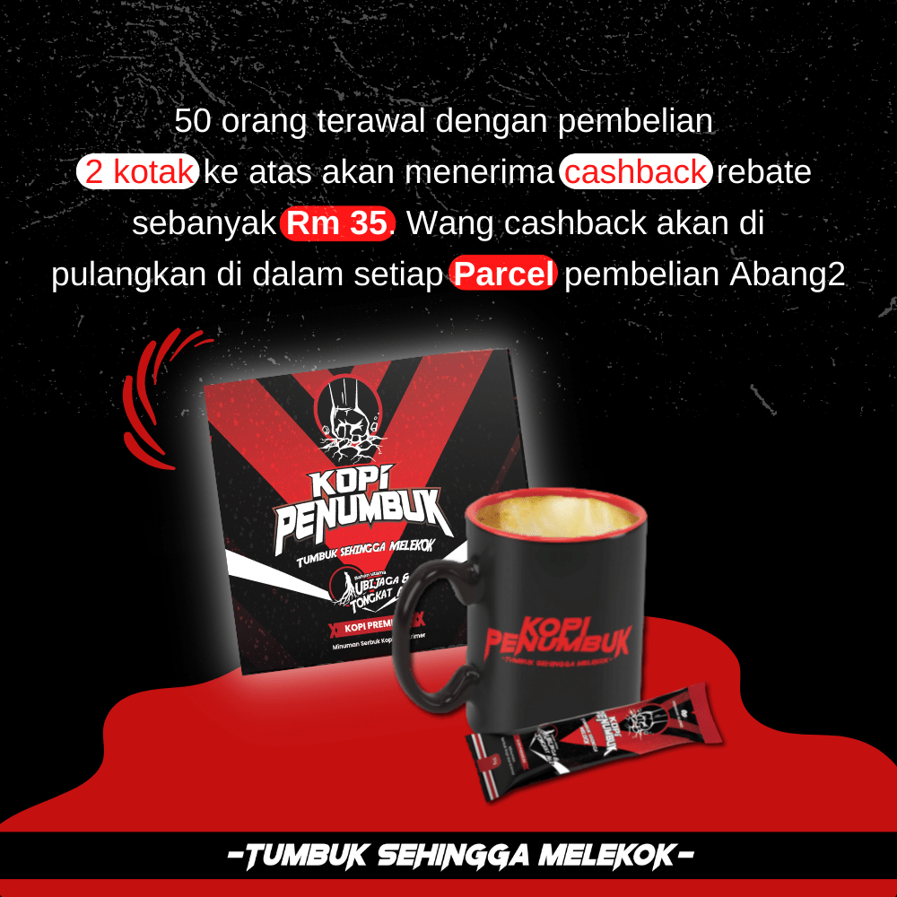 Dapatkan Sekarang Sebelum OFFER TAMAT! Pembelian 2 Kotak Ke atas untuk 50 Orang Terawal akan dapat Cashback Rm35